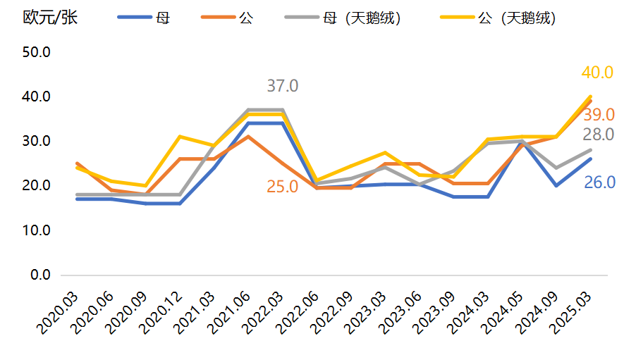 2025年一季度,传统消费淡季,貂皮价格从高位波动下行。究其原因,一是生产成本降低为厂商提供降价空间,电商渠道占比提升减少了中间环节成本,部分企业通过线上直销降低售价,带动整体价格指数下行;二是国内裘皮市场库存压力较大,整体销量受暖冬天气影响减少,企业为消化库存,选择降价让利促销;三是环保皮草普及和消费观念转变,消费者偏好转向轻便、高性价比服饰,导致高价皮草类大衣需求增长乏力,传统裘皮需求有所萎缩,中低端裘皮市场价格竞争加剧。