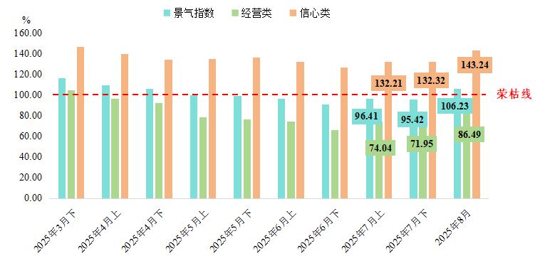8月景气指数重返扩张区间,其内部结构呈现出“信心强于经营”的特征,揭示出当前行业发展的核心逻辑:市场主体对未来的乐观预期正在引领和推动行业走出调整期。