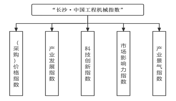 “长沙·中国工程机械指数”以习近平新时代中国特色社会主义思想为指导,基于长沙市地域实情、工程机械产业特色和发展方向,结合高质量发展目标,运用定量和定性相结合、定量为主导的研究思路,通过主客观相互结合考虑差异分类、突出重点方向引导,设计了一套包括(采购)价格指数、产业发展指数、科技创新指数、市场影响力指数、产业景气指数在内的完整指数体系。