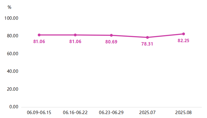2025年8月,藤本类产品价格指数小幅上涨,本期收于82.25点,环比上涨3.94点,具体走势如下图所示: