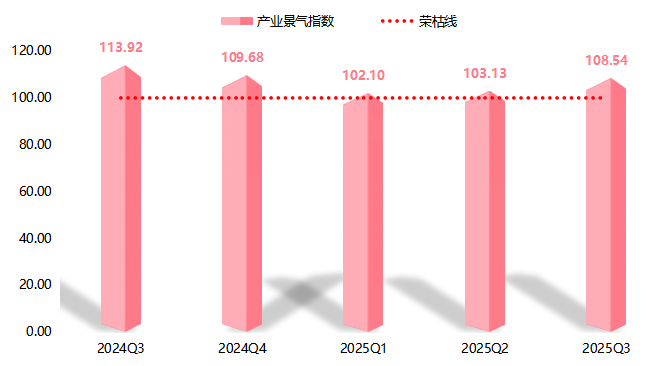 2025年三季度,沧县红枣及干果坚果食品产业景气指数表现良好,指数收于108.54点,高出荣枯线8.54个百分点,表明行业整体发展情况良好,市场信心较为充足。具体运行情况如下图所示: