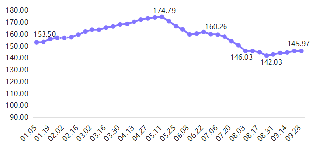 9月:节前需求启动,价格温和反弹。进入9月,随着中秋、国庆“双节”临近,礼品及餐饮消费市场开始备货,带动鲜天麻需求回暖。同时,产地临近产新,新货尚未大量上市,且库存经过持续消耗后有所减少,市场供应压力缓解。多重因素推动下,鲜天麻价格指数止跌回升,从8月第3周的146.50点持续回升至9月末的154.47点,整体涨幅为5.44%,市场信心有所恢复。