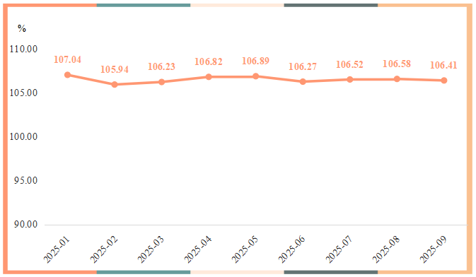 据“衡水·中国工程橡胶指数”信息系统监测,2025年三季度,衡水工程橡胶产品价格指数先扬后抑,整体略有上涨,9月指数收于106.41点,较6月小幅上涨0.14点。具体运行情况如下图所示:
