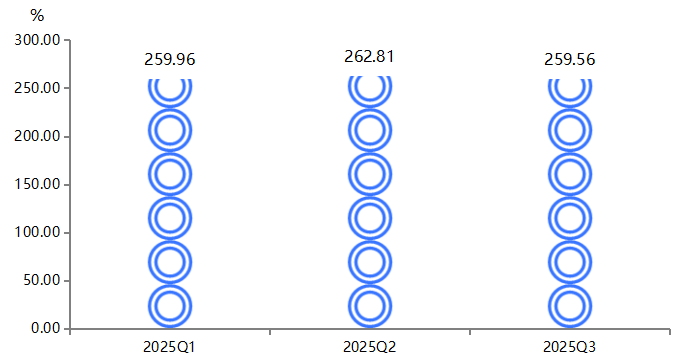 2025年三季度,复合材料产业科技创新指数在高位微调,指数收报于259.56点,较二季度下降1.23%,保持在历史较高水平,表明产业创新活动在经历前期高速增长后进入稳定发展阶段。具体运行情况如下图所示: