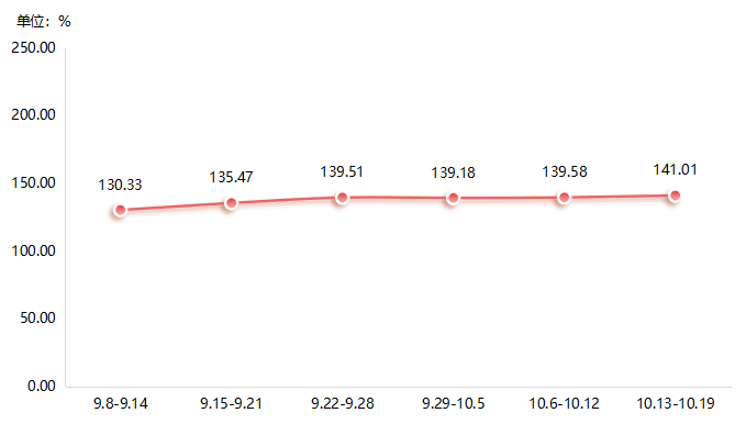 本期(2025.10.13-10.19,下同),受原料行情上涨支撑影响,兰炭市场整体表现稳中偏强。据“神木·中国兰炭产业指数”信息系统监测,兰炭产品价格总指数收于141.01点,环比上涨1.02%。细分产品中,中料、小料、焦末价格指数上涨,煤气价格指数持平,大料、轻油和重油价格指数下降。