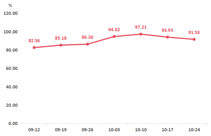 10月正值秋季水果集中上市期,柚子、冰糖橙、冬枣等应季水果大量涌入市场,供应量显著增加,带动价格普遍回落。以福建柚子为例,得益于今年气候条件适宜,福建柚子产量稳中有增,当前价格已降至近五六年来的低位水平。