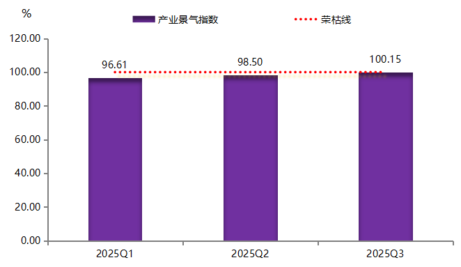 2025年三季度,裘皮产业景气指数为100.15点,突破荣枯线,景气向好运行。具体运行情况如下图所示: