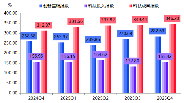 2025年四季度,科技创新指数为272.45点,同比增长8.17%,整体呈增长态势。具体运行情况如下: