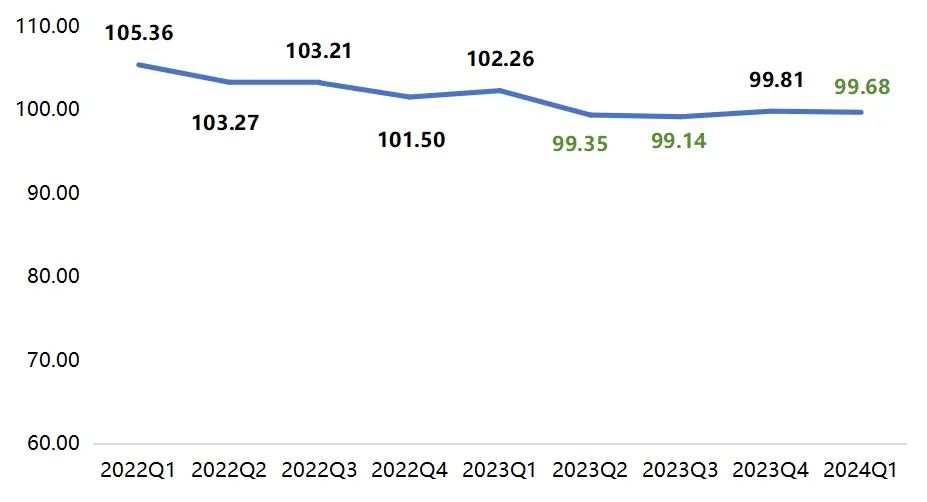 2024年一季度,高阳纺织企业品牌线上推广费用指数为99.68点,环比下降0.13个百分点,同比下降2.58个百分点,处于较低位运行态势,或对于企业长期健康发展构成一定压力。