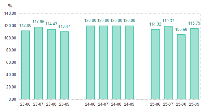 6月,浦江葡萄产业信心指数为114.32点。7月,随着新产季葡萄开始上市,种植户和经销商对市场前景预期积极,产业信心指数上升至119.37点,8月虽回落至105.68点,但仍位于荣枯线上方运行。9月,国庆、中秋双节即将来临,鲜食葡萄需求增加,包装精美的礼品盒需求也随之增长,产业信心指数回升至115.79点。整体来看,2025年三季度,浦江葡萄产业信心指数虽较2024年同期略有下降,但基本也处于较高景气区间,表明企业、种植户等对浦江葡萄产业的长期发展前景保持乐观态度。