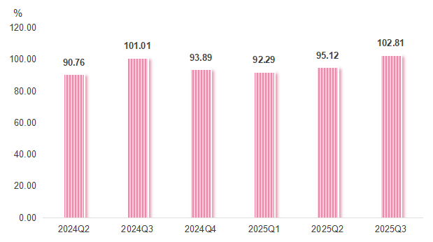 2025年三季度,浦江葡萄品牌互联网影响力指数延续上升势头,指数达到102.81点,较二季度增长8.08%,较去年同期提高1.78%,表明“浦江葡萄”品牌在网络空间的关注度和传播度进一步扩大。指数具体运行走势如下图所示: