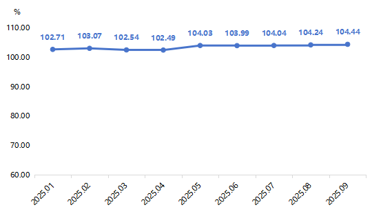 据“沧县·中国红枣及干果坚果食品产业指数”信息系统监测,2025年三季度,沧县红枣及干果坚果产品价格指数稳中有升,9月指数收于104.44点,较6月上涨0.45点。具体运行情况如下图所示:
