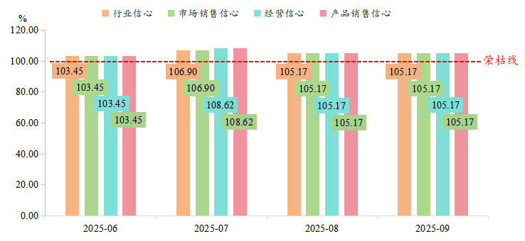 2025年三季度,整体来看,信心类景气指数各细分指标始终保持在荣枯线上方;季度内,信心水平历经“7月冲高,8、9月高位企稳”的过程,表明市场对行业发展的乐观预期得到巩固和持续,为产业的稳健发展奠定下坚实的信心基础。