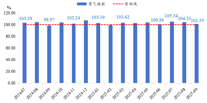 2025年三季度,景气指数持续在荣枯线上方运行。其中,经营类、信心类景气指数均保持积极态势。