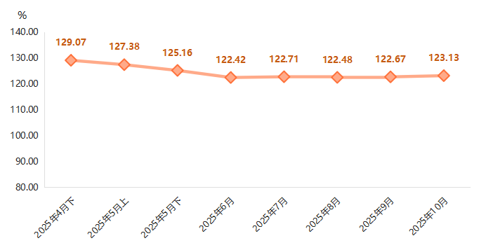 据“徐闻·中国菠萝指数”监测,2025年10月,徐闻菠萝产品价格指数温和回升,指数收于123.13点,环比上涨0.37%,同比上涨2.71%。指数走势如下图所示: