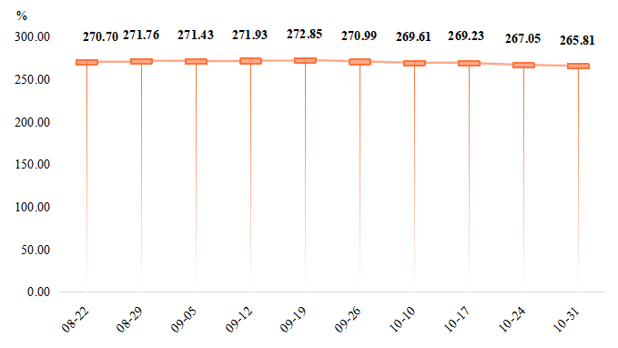2025年10月,中国远洋鱿鱼周价格指数持续下行。具体来看,指数在首周开始持续走低,截至第四周收于265.81点,较9月最后一周下跌1.91%。