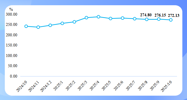 浙江舟山国际农产品贸易中心有限公司数据显示:从月价格指数表现来看,2025年10月,中国远洋鱿鱼月价格指数小幅走低,指数收于272.13点,环比小幅下跌1.46%。从周价格指数表现来看,鱿鱼价格指数持续下行,截至第四周收于265.81点,较9月最后一周下跌1.91%。