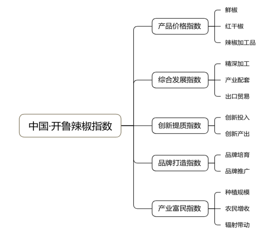 为准确反映开鲁辣椒产业产品价格行情、综合发展态势及产业富民成效,指数编制团队通过深入市场调研和多次需求接洽,结合产业发展特点,设计“中国·开鲁辣椒指数”由产品价格指数、综合发展指数、创新提质指数、品牌打造指数和产业富民指数五大模块组成。