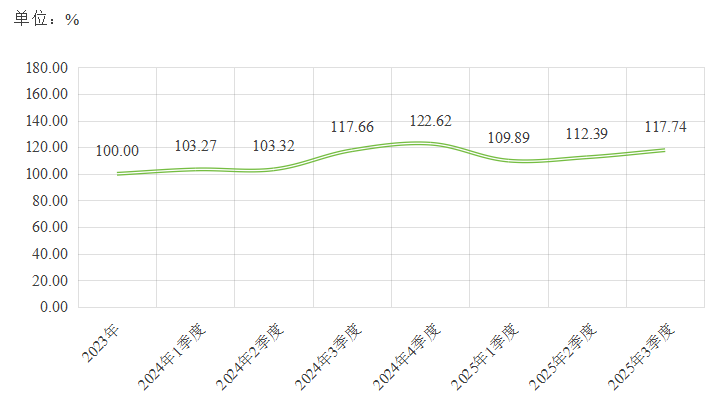 2025年三季度,创新提质指数保持稳步上行态势。具体运行情况如下图所示: