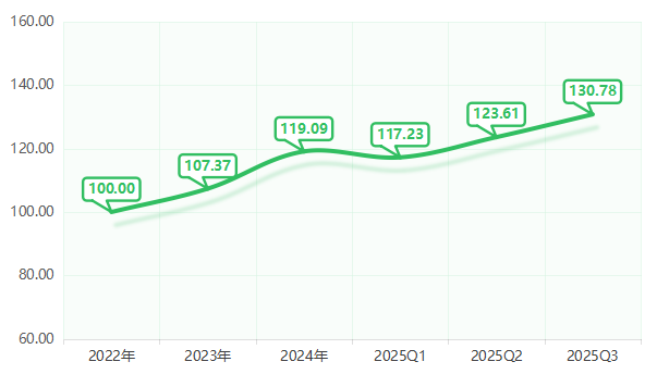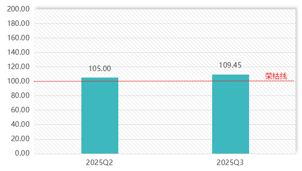 2025年三季度,产业景气指数为109.45点,高于荣枯线,产业处于景气区间。
