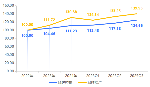 品牌培育指数下设品牌经营指数和品牌推广指数,2025年三季度两大分项指数均呈增长趋势,具体运行情况如下: