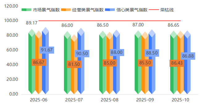 10月信心类景气指数为86.88点,较9月回落1.62个百分点。受大宗品种如根茎类、果种类价格普遍下行,部分品种白术、冬凌草等因产新放量价格下挫,企业利润空间持续被挤压,以及集中产新后市场整体库存仍处高位,消化周期拉长的压力未得到明显缓解,行业转型期的不确定性让企业持观望态度,中药材市场商户对市场发展、行业发展及政策环境的信心均出现下滑。