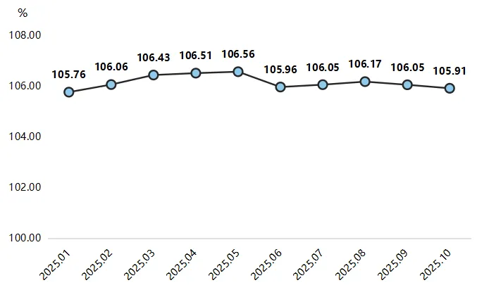 2025年10月,民权制冷产品价格指数微幅下行,指数收于105.91点,环比下降0.14个百分点。