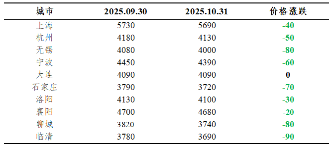 供应方面,10-11月随着市场价格降低,钢厂利润收缩,钢厂开始调整生产计划及确定11月检修计划,11月轴承钢供应压力或将有所缓解。需求方面,部分下游行业普遍采用“按需采购”模式,缺乏主动备货的意愿。综合来看,预计11月轴承钢市场价格或将震荡趋弱运行。