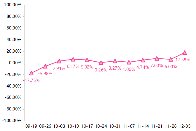 同比来看,本期水果价格指数相较去年同期处于较高水平,本期同比升幅为17.58%。