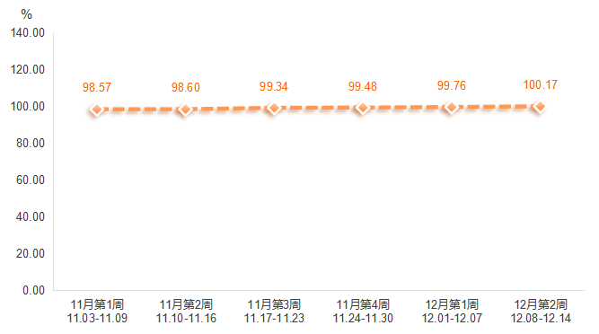 2025年12月第2周(12月8日—12月14日),通辽黄玉米产品价格指数延续涨势,指数收于100.17点,环比上涨0.41%。指数具体运行情况如下图所示:
