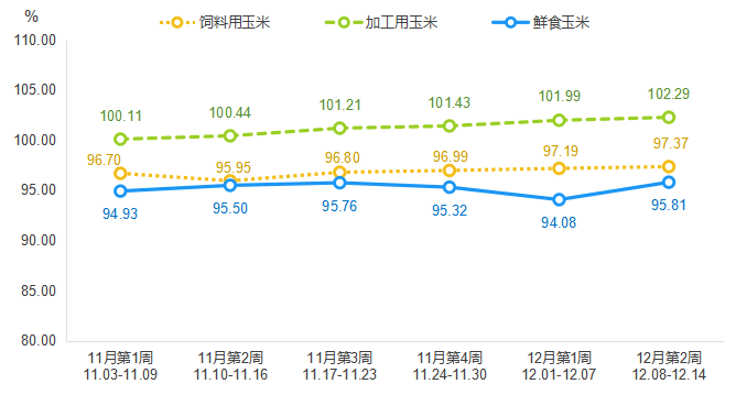 12月第2周,通辽黄玉米产品价格指数延续涨势