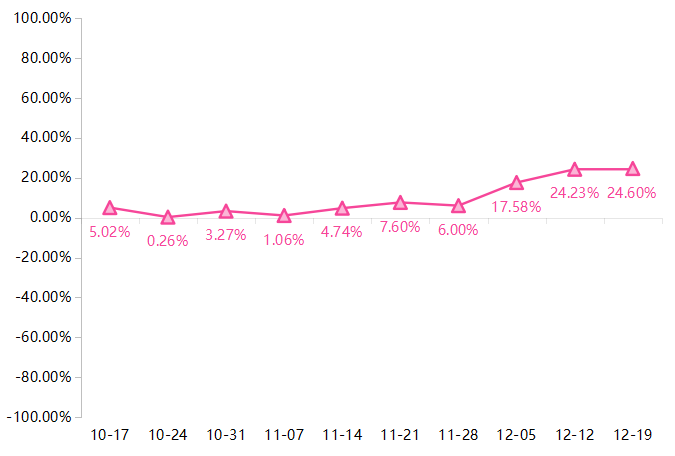 同比来看,本期水果价格指数相较去年同期处于较高水平,本期同比升幅为24.60%。