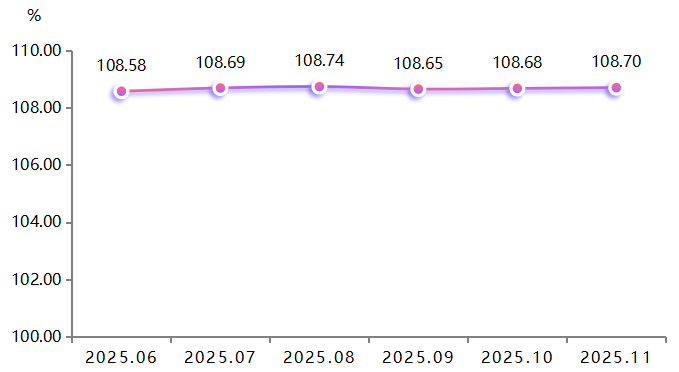 2025年11月,高阳纺织产品价格指数收报于108.70点,环比上涨0.02%,毛巾类家纺产品的季节性需求释放,促使高阳纺织产品价格指数小幅上扬。