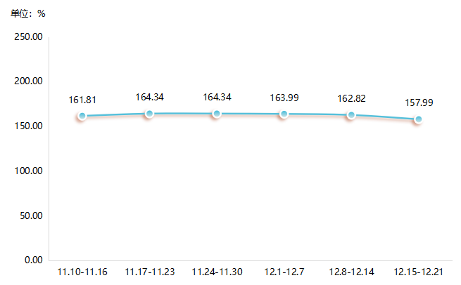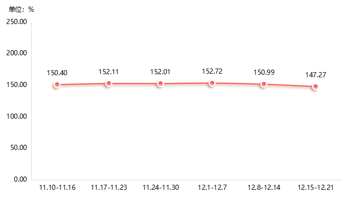 本期(2025.12.15-12.21,下同),神木兰炭市场继续调整。据“神木·中国兰炭产业指数”信息系统监测,本期兰炭产品价格总指数收于147.27点,环比下降2.46%,降幅较前期有所增加。细分产品中,除煤气价格指数持平外,其余产品价格指数均有下滑。