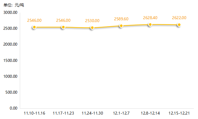 本期,电石市场均价为2622.00元/吨,环比略降0.24%。供应端随着内蒙古地区有序用电影响减弱,企业生产逐步恢复,出货积极导致市场供应增加;需求端下游虽进入补库周期,但受PVC价格低迷及环保等因素制约,实际采购偏弱,企业库存积累、待卸车增加。电石行情对兰炭市场已形成负向传导:一方面,电石价格下行与库存压力使其对原料兰炭的压价情绪增强,部分企业已下调兰炭采购价,削弱了成本支撑;另一方面,电石行业整体需求偏弱,难以对兰炭消费形成有力拉动。