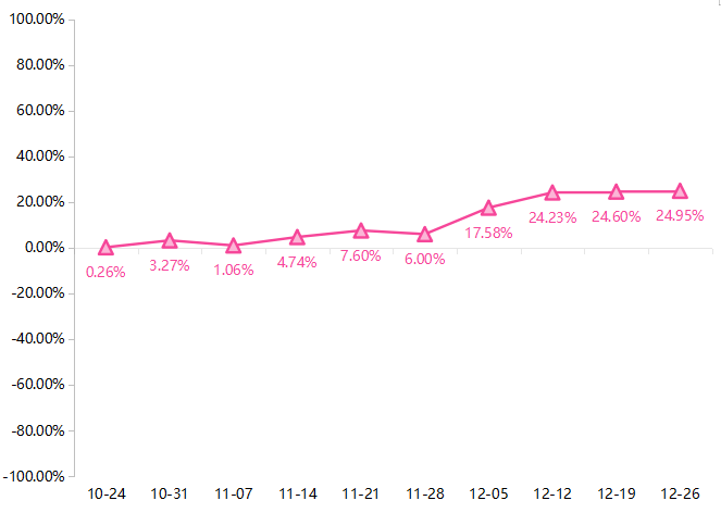 同比来看,本期水果价格指数相较去年同期仍处于较高水平,同比升幅为24.95%。