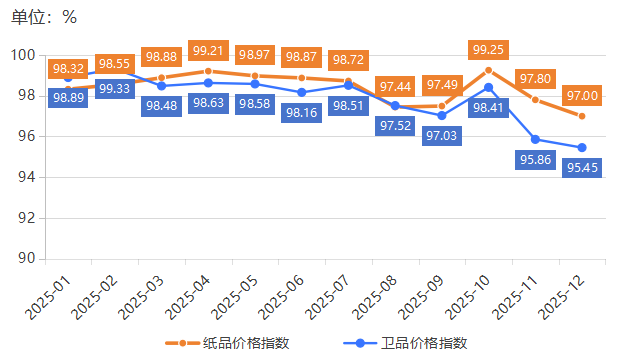 2025年1—12月纸品、卫品价格指数运行走势
