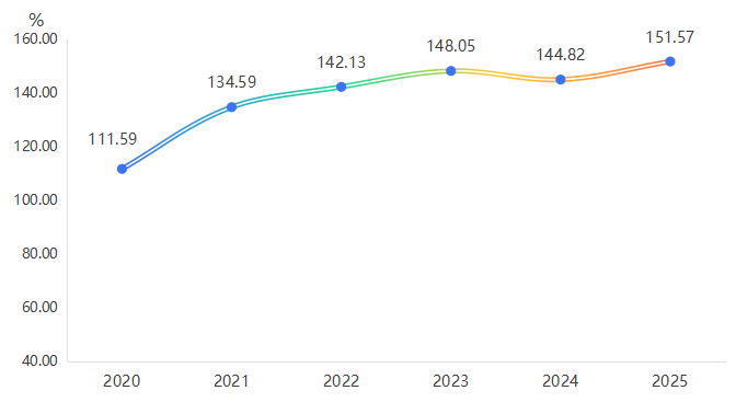 2025年武安小米产业发展指数收至151.57点,同比实现显著回升并创下历史新高,标志着武安小米产业在经过上一年度的短期调整后,在2025年重拾强劲的增长动能,整体发展迈上了新台阶。