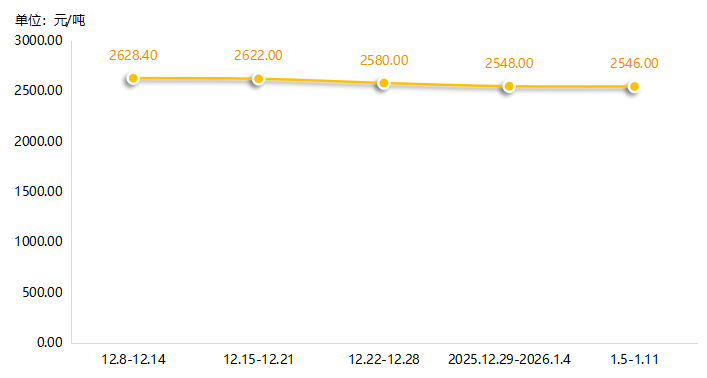 本期,电石市场均价为2546.00元/吨,环比略降0.08%。分析来看,供应方面内蒙古有序用电政策虽力度有所减弱,产量边际回升,但企业挺价意愿仍强,整体供应维持偏紧,支撑电石价格高位整理。而从需求端来看,近期电石采购虽有提升,但高价接受度有限,导致价格走势乏力。对于兰炭市场来讲,电石行业的稳价态势与持续生产,为兰炭需求提供了一定底部支撑,尤其是对中小料及焦面的采购保持稳定,一定程度上减缓了兰炭企业的库存压力,但由于电石价格未能实现弱转强,其对兰炭价格的向上拉动作用受限,难以带动兰炭行情同步走强。综合来看,电石市场在供需紧平衡下以稳为主,对兰炭市场的影响更多体现在“托底”而非“推动”,兰炭行情短期仍受自身高库存与成本压力双重制约,整体延续整理格局。