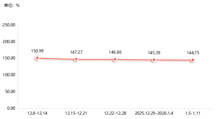 本期(2026.1.5-1.11,下同),神木兰炭市场整体延续平稳走势。据“神木·中国兰炭产业指数”信息系统监测,本期兰炭产品价格总指数收于144.75点,环比略降0.44%。细分产品中,大料、重油价格指数上涨,煤气价格指数持平,中料、小料、焦末和轻油价格指数下降。