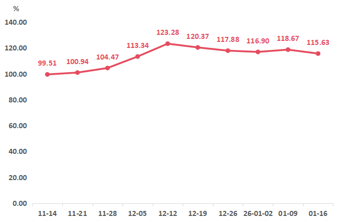 据“南大堡市场蔬果指数”信息系统监测,本期水果(周定基)价格指数有所下滑,收于115.63点,环比下降2.56%。