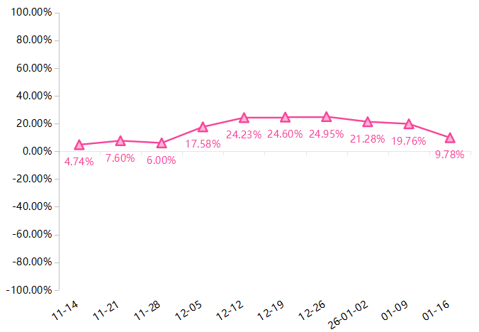 同比来看,本期水果价格指数相较去年同期仍处于较高水平,本期同比升幅为9.78%。