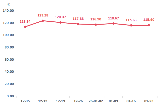 据“南大堡市场蔬果指数”信息系统监测,本期水果(周定基)价格指数略有回升,收于115.90点,环比微升0.23%。