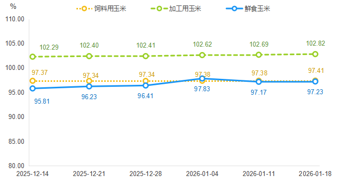 低库存下的刚性补库需求显现。前期受价格波动及物流运输限制影响,饲料企业采购订单到货节奏偏慢,随着春节临近,下游饲料、养殖等行业补库需求有所上升。同时,下游养殖业效益有所改善,为玉米饲用消费提供了稳定的刚性需求支撑。对于深加工企业而言,受玉米原料价格上涨影响,生产成本压力有所回升。尽管淀粉等下游产品价格受节前备货带动小幅跟涨,但企业加工利润改善幅度有限。深加工企业对高价玉米的接受度较为被动,采购策略以保障生产连续性、谨慎随用随采为主,主动提价扩库意愿不强。