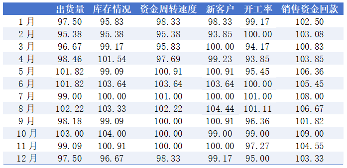 下半年产业景气在7、8月份延续升势并触及全年峰值103.33点后,随后连续四个月下行,至12月回落至99.07点,滑落至荣枯线下方。具体来看,尽管三季度初的冲高受到“新客户”指标和强劲的资金回款支撑,但“出货量”指标已显露疲态,并在年末降至97.50点。一方面,在于市场信心的显著降温,“未来销售”和“行业前景”两大预期指标从8月的高点同步、持续下滑,直接导致了景气的下行;另一方面,面对趋弱的需求,企业开始调整生产,“开工率”从9月起明显下降至12月的95.00点,产业进入被动调整和去库存阶段。