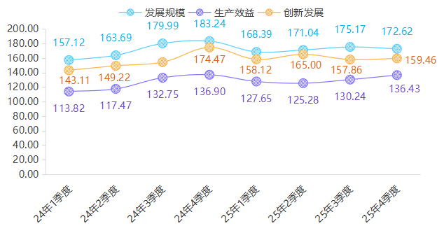 二至三季度,发展规模指数逐步回升,至三季度达到全年峰值175.17点,四季度则小幅回调。