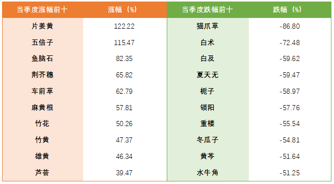 2025年安国中药材指数构成品种前十涨跌情况统计