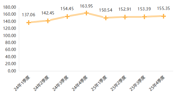 2025年中药材产业发展指数整体呈现“一季度回调、二至四季度稳步回升”的态势,各季度指数均维持在150点以上,四季度指数攀升至全年峰值155.35点,整体保持稳健,贴合全年中药材市场“结构分化、效益回暖”的运行基调。