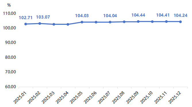 据“沧县·中国红枣及干果坚果食品产业指数”信息系统监测,2025年,红枣及干果坚果产品价格指数波动上行,年末指数收于104.24点,较年初小幅上涨1.53点。具体运行情况如下图所示: