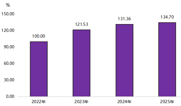 2025年,研发创新指数再创新高,收于134.70点,较2024年上升3.34点。具体运行情况如下图所示: